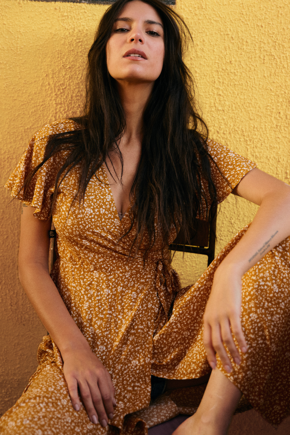 Vestido Largo Ecuador Flores Mostaza Mujer