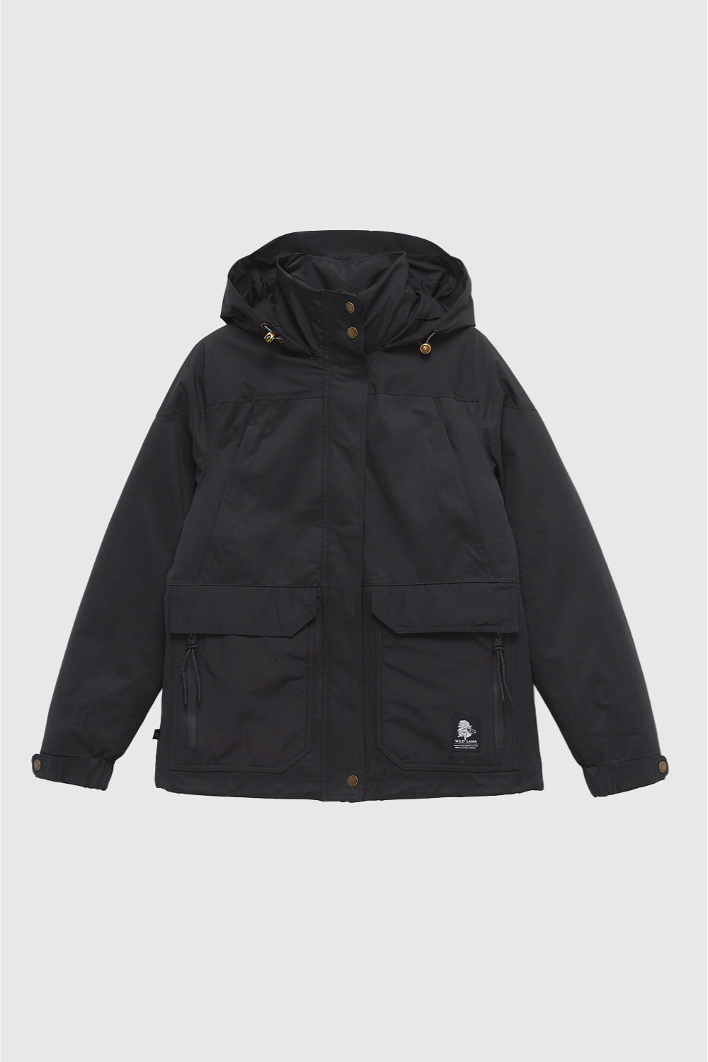 Entre sus ventajas encontrarás puños ajustables, dos bolsillos frontales con cierre y dos bolsillos grandes con broches metálicos para llevar lo que necesites a mano. También tiene un bolsillo interior con velcro, un gorro ajustable y tiradores de cierre removibles por si quieres personalizarla.